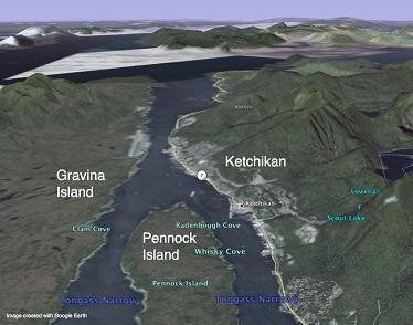 Ketchikan Pennock Gravina bridge backed by Borough Alaska